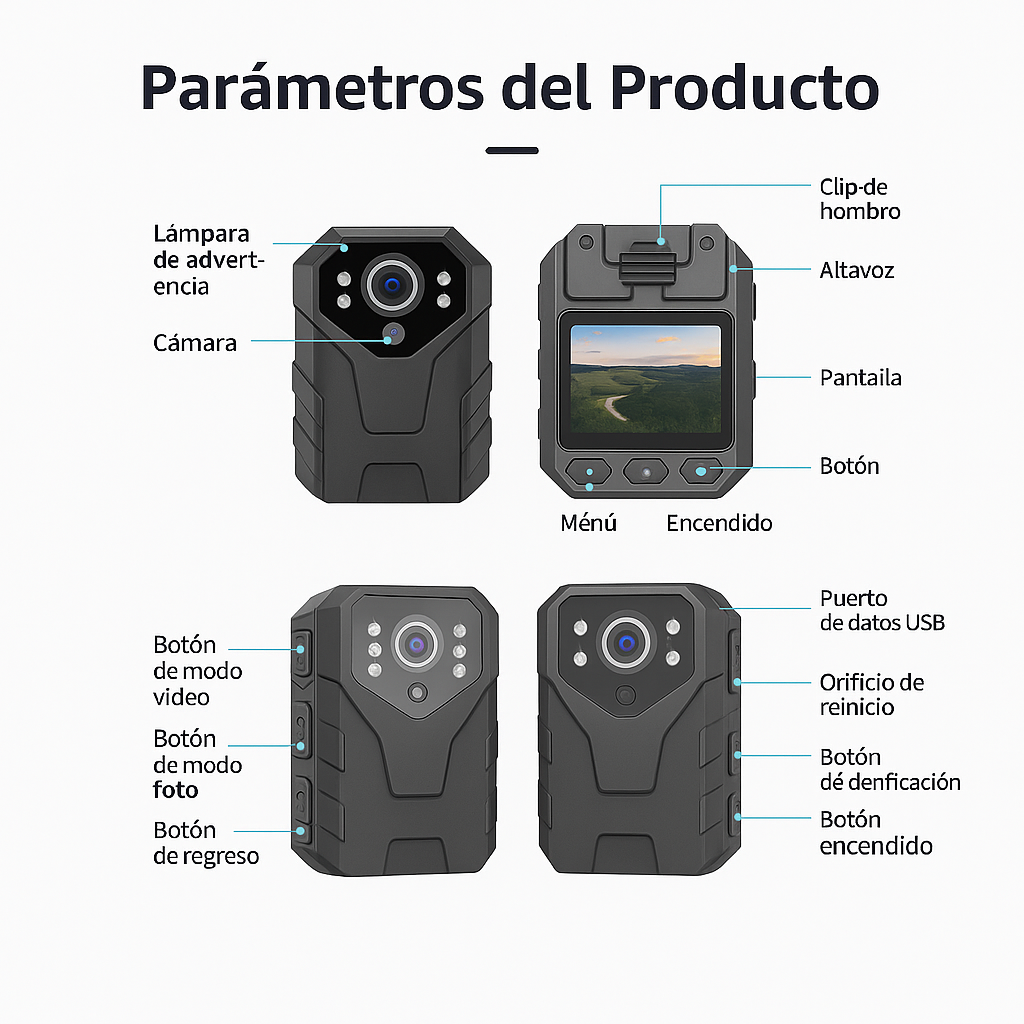 DUTY CAM fue creada para quienes necesitan evidencia confiable en la calle. Graba en 2160p/1080p con visión nocturna IR, mantiene hasta 8 horas de trabajo y su lente gran angular capta más escena.